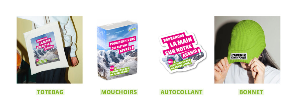 Afin de pouvoir lancer la production des goodies de la campagne en janvier, il nous manque encore 23’000 francs.